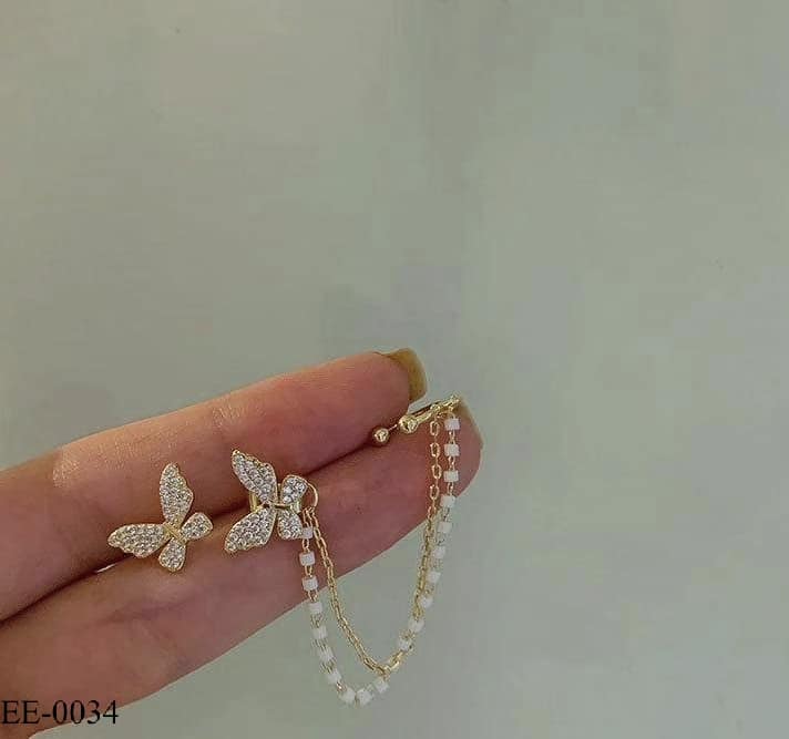 Elegant Butterfly Metal Chain Tassel Stud Earrings